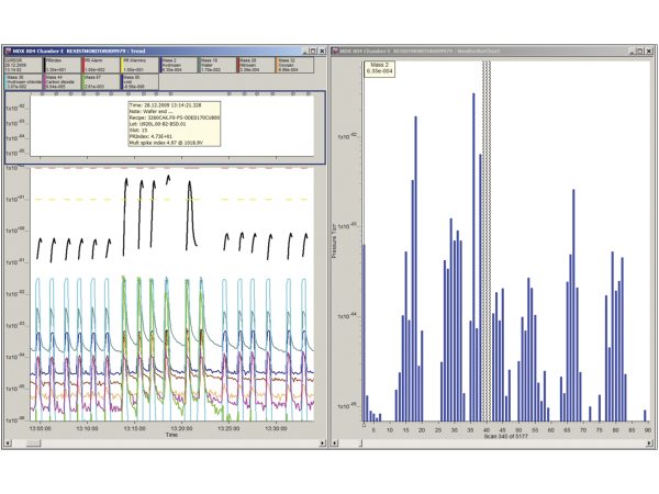 Using TOOLweb RGA sensor integration option for process tools, the 300mm Resist-Torr XD can be used as a degas chamber sensor in a completely automated process environment (Figure 5). TOOLweb RGA maintains a constant monitor of tool activities with all sensor data being framed by wafer logistics before alarm models are applied. Full alarm and data reporting to the FAB host and FDC are available so real time monitoring of chamber conditions and flagging of any process excursions from ideal conditions is possible.