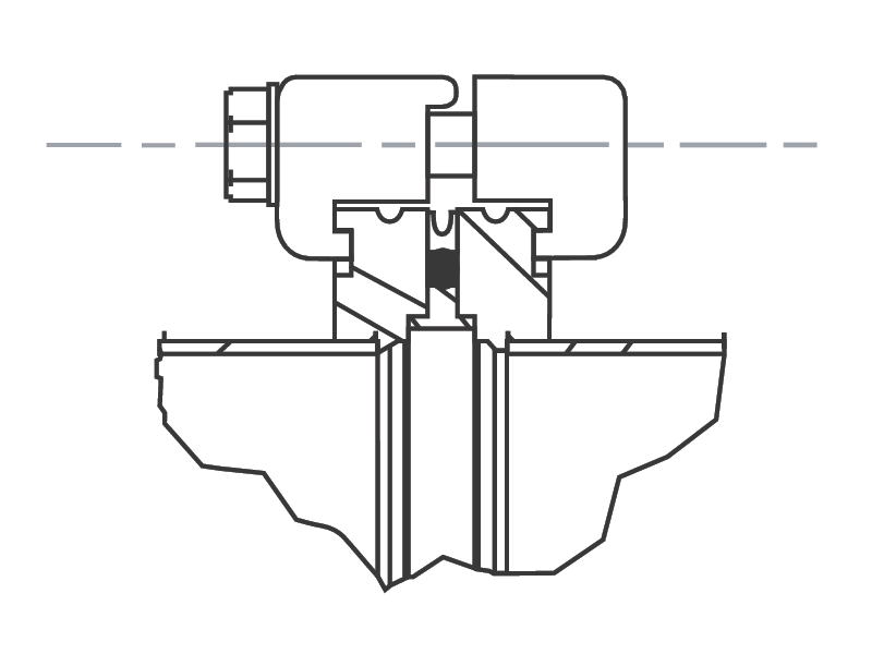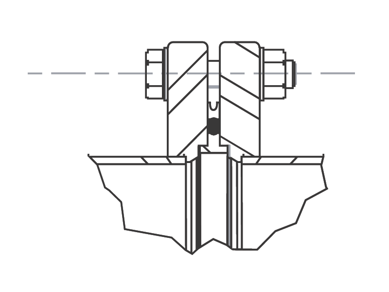 Viton® is recommended where temperatures, chemical resistance or long installed life make it beneficial. Use Buna-N where temperatures are moderate, and installed useful life is consistent with this material. The centering ring is available in stainless steel or aluminum. Use stainless steel where chemical resistance is needed. Flanges and seals are designed to be tightened to metal to metal contact.