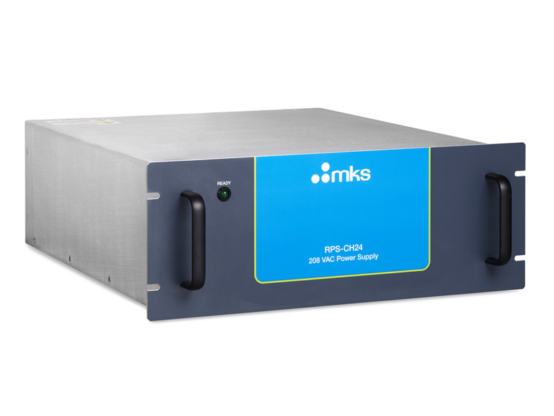 The RPS-CH24P1, 24 kW remote plasma source is designed for use with larger Atomic Layer Deposition (ALD) and Quad-style Chemical Vapor Deposition (CVD) chambers used in Semiconductor, Flat Panel Display, or Photovoltaic (PV) processes. A split-powered DC/RF design consisting of a rack mounted DC power supply and a 24 kW RF remote toroidal applicator head provides highly efficient destruction of NF3 molecules for chamber clean applications or high flow mixed gas species applications.