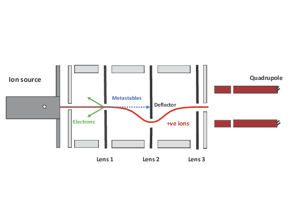 V-lens technology, a unique enabling solution, helps to overcome this issue by providing a consistently low mass independent baseline and detection levels in the low ppb range. This is achieved with unique ion optics that utilize a patented double-focusing and deflection mechanism that significantly reduces background and enhances sensitivity (see figure).
