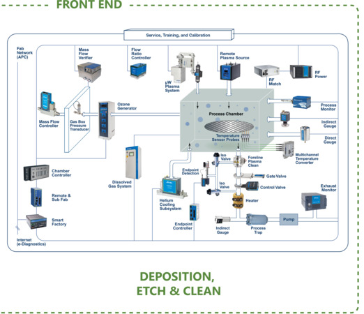 MKS' Surround the Wafer® offering provides Semiconductor customers with a wide range of products, design and development services, system level integration, training programs, calibration, service, and repair. This unique combination of products and services enables our customers to solve the challenges of ultra-thin layers, new materials and complex 3D structures while maintaining quality and productivity levels.
